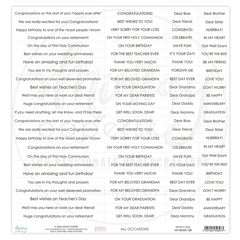 Home Mintay Papers Folha de Frases - Mintay Basic - Words -All Occasions Folha de Frases - Mintay Basic - Words -All Occasions 1,20 € Desconto de %. O produto encontra-se sem stock. Adicionar à wishlist Marca Mintay Papers Partilhar