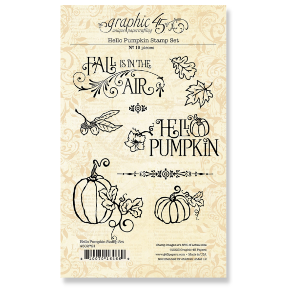 Home Graphic 45 Hello Pumpkin 4×6 Stamp Set Hello Pumpkin 4×6 Stamp Set 12,00 € Desconto de %. O produto encontra-se sem stock. Adicionar à wishlist Marca Graphic 45 Características Partilhar