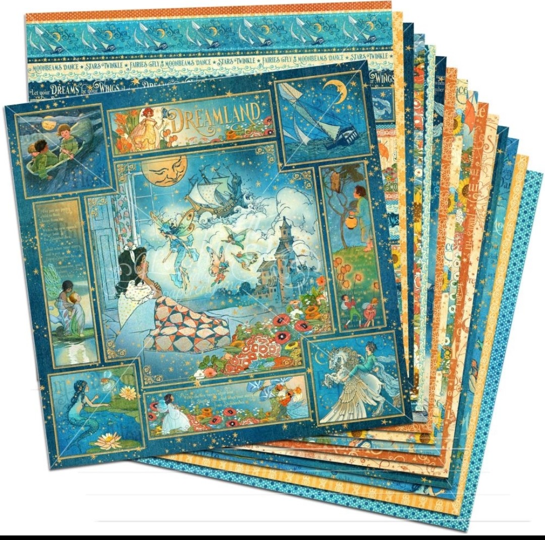 - 14 folhas frente e verso 12*12 da coleção Dreamland da Graphic 45;