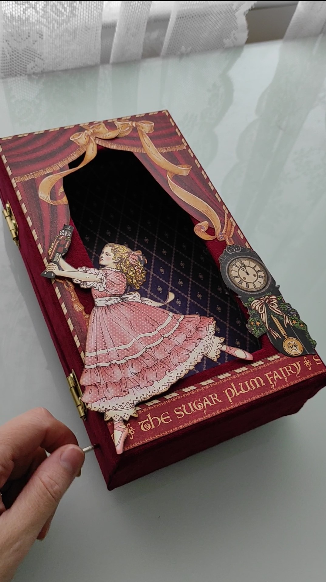 Esta é uma caixa inteiramente forrada no exterior por antelina de uma cor maravilhosa e super elegante (como vêm na foto) da marca @kora_projects e papéis lindíssimos da marca Graphic 45 Papercrafting]] cujo tema é o Quebra Nozes (coleção Deluxe Nutcracker Sweet)